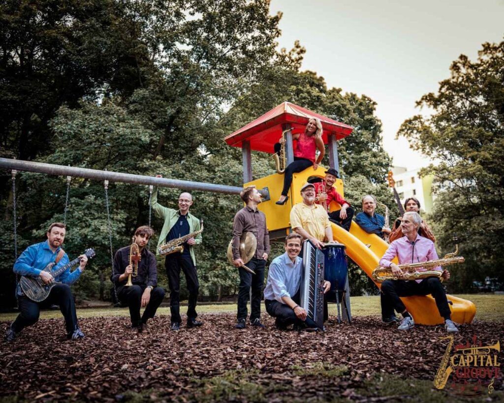 Wenn dieses Elfköpfige Berliner Ensemble loslegt, vibriert der Boden. Mit satten Eigenkompositionen und fetten Arrangements legendärer Funk-Classics servieren sie ein heißes Set zwischen Soul, Latin, Jazz, Blues und Disco.